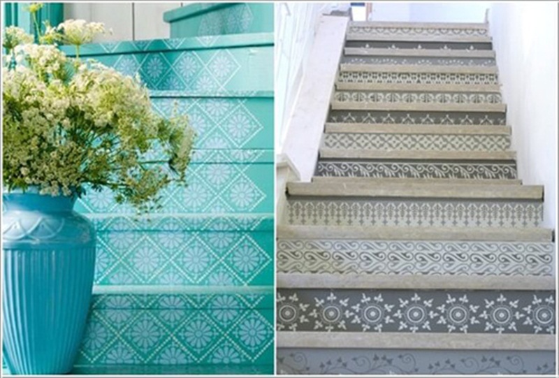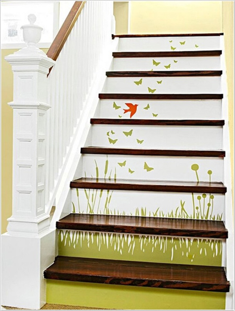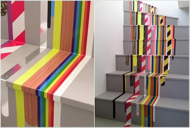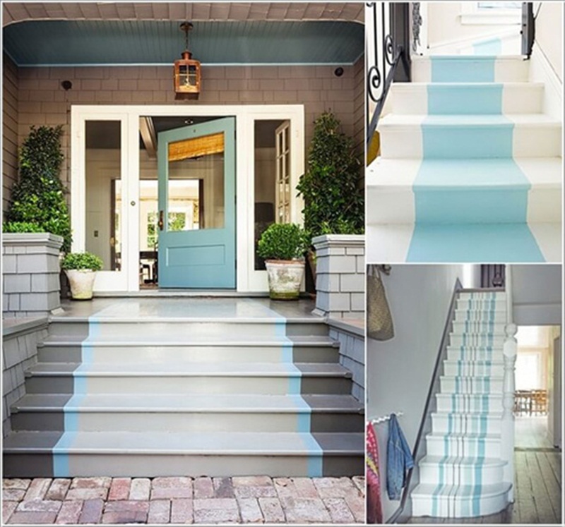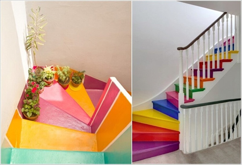 Hoặc để đảm bảo rằng cầu thang nhà mình đồng bộ bởi những đường kẻ thì bạn có thể khéo léo dùng sơn hoặc giấy dán
