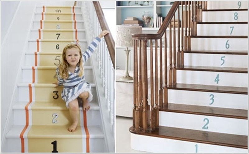 Nếu nhà bạn có trẻ em thì việc ghi những con số trên mỗi bậc cầu thang sẽ giúp con bạn học đếm 1 cách dễ dàng hơn